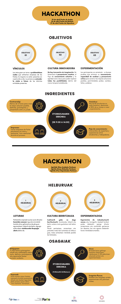Los Hackaton o concursos de ideas se celebrarán provincialmente, los días 25, 26 y 27 de abril, Araba, Bizkaia y Gipuzkoa respectivamente.